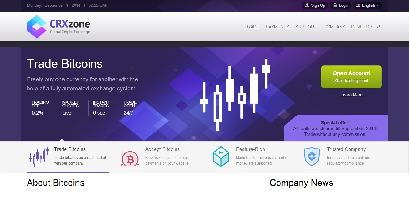 CRXzone ofrece un diseño muy claro contando con libros de pedidos y gráficos en vivo. Hay múltiples informes comerciales que incluyen indicadores de tendencia, además de los volúmenes, precios más altos / los precios del mercado y un historial de comercio. El acceso a la API de comercio también está disponible.